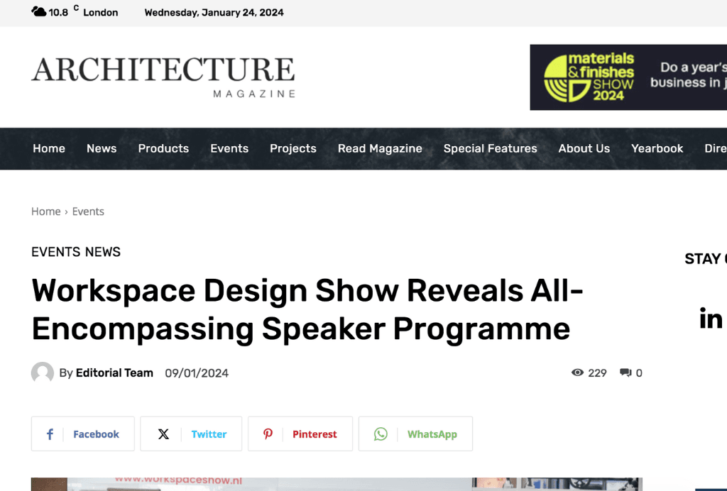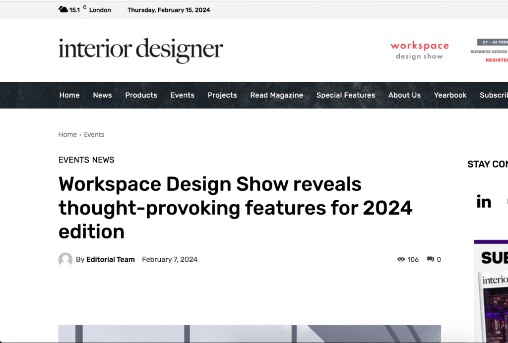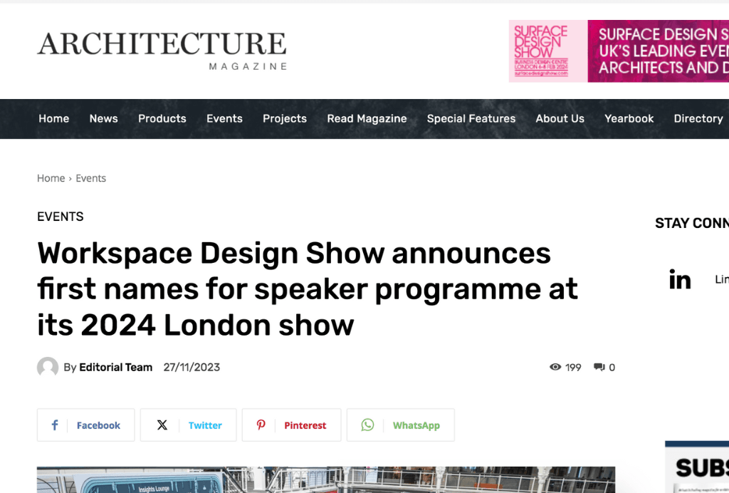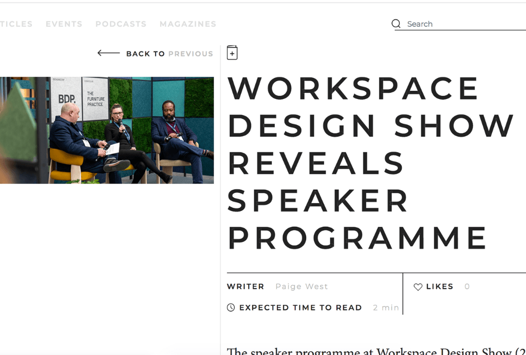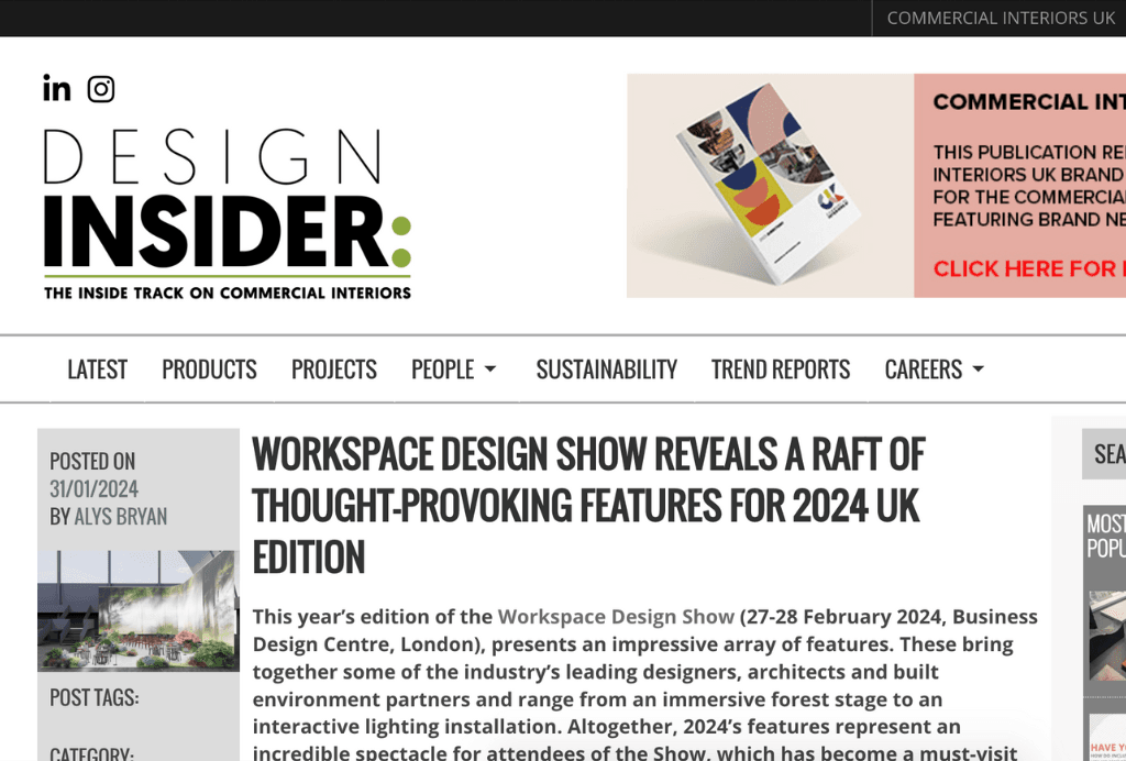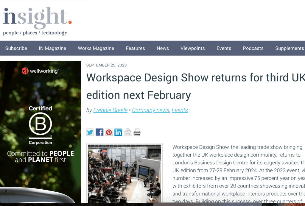 Workspace Design Show featured On The Workplace Design Magazine. Read about it here