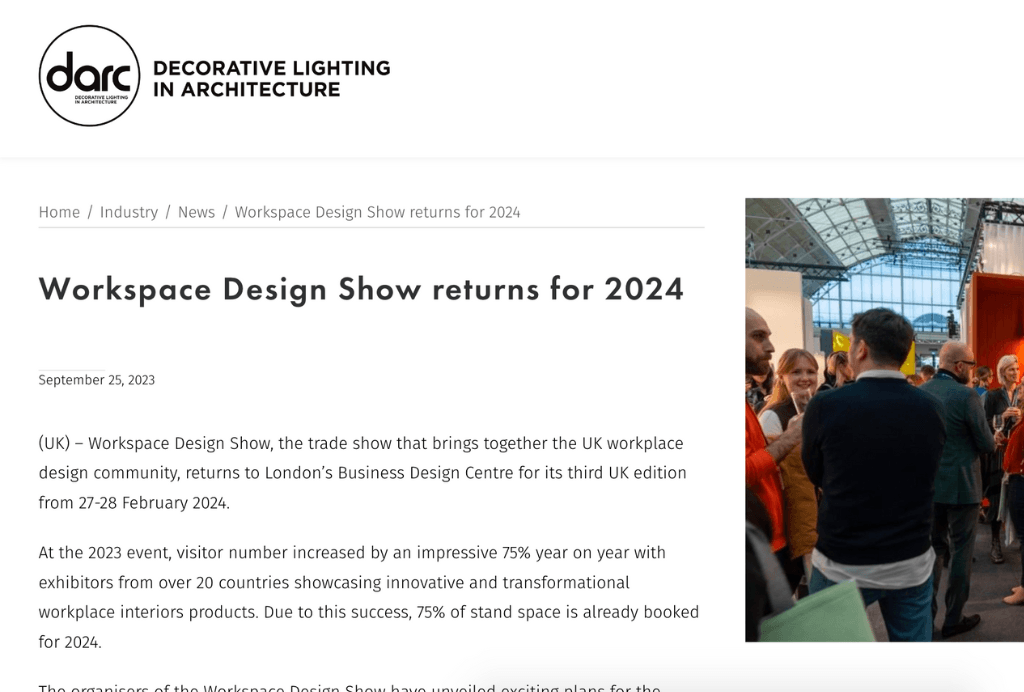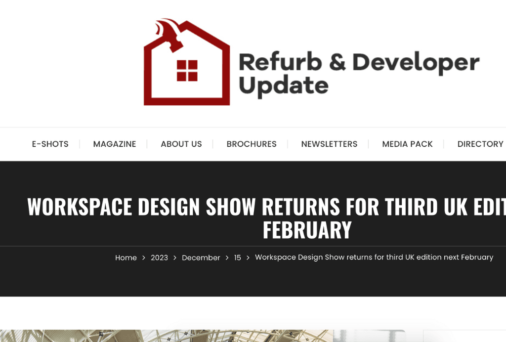 Thank you to the kind folks over at Refurb & Developer Update for featuring the 2023 edition of Workspace Design Show last month.