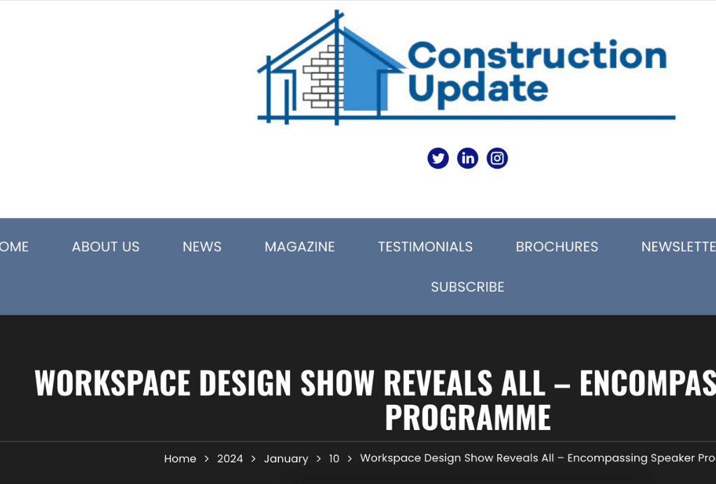 “Less than two months to go until Workspace Design Show 2021 opens” on Construction Update