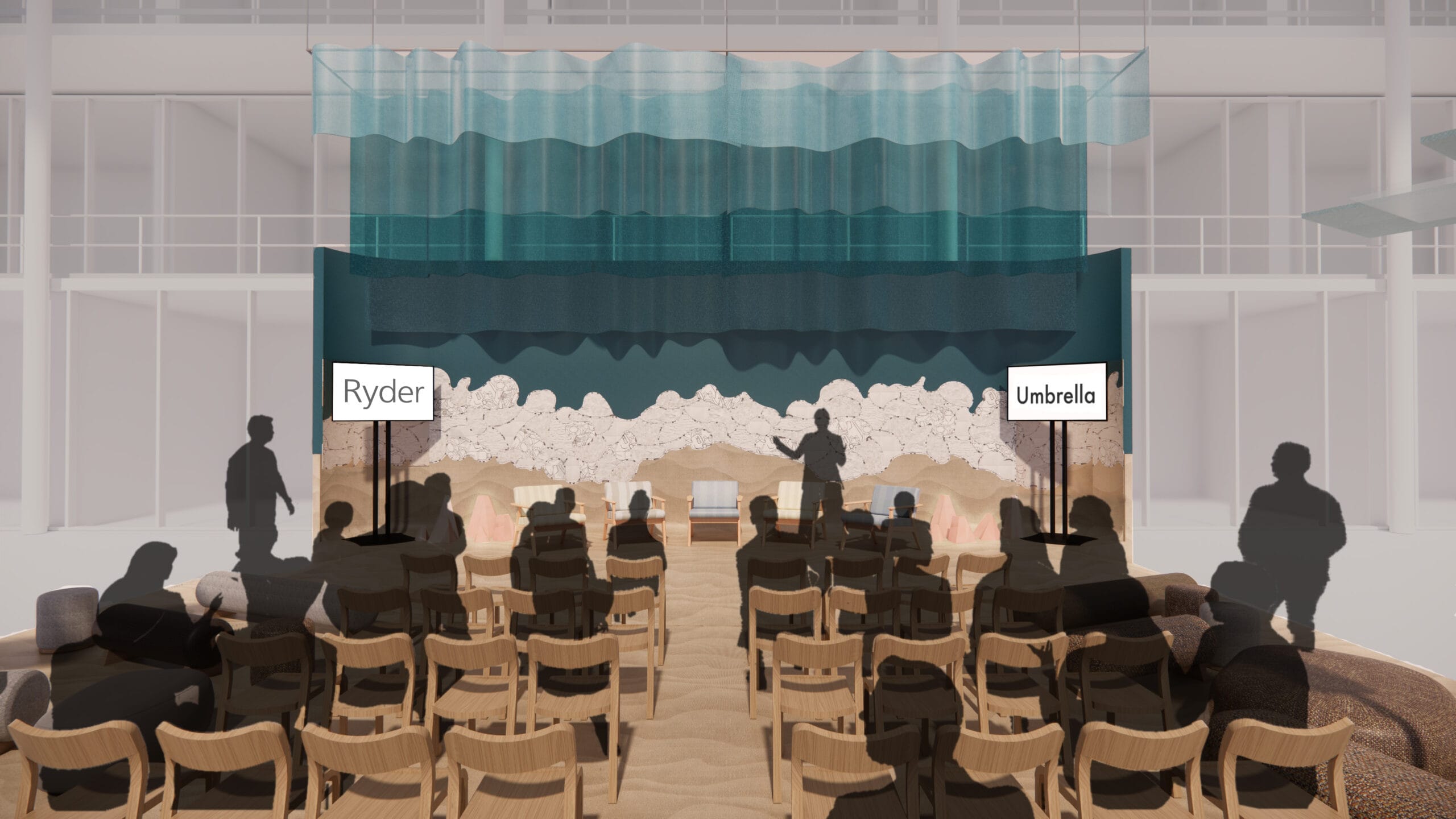 "On arrival, attendees will be met by the spectacular Destination Workplace Rebirth entrance, designed by the worldwide integrated architecture, design, planning, and consulting firm Gensler, along with design partners, AW Spaces, Acrylisize and Kvadrat."